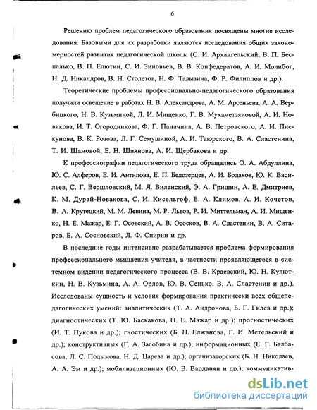 В последние годы интенсивно разрабатывается проблема формирования профессионального мышления учителя, в частности проявляющегося в системном видении педагогического процесса (В. В. Краевский, Ю. Н. Кулют-кин, Н. В. Кузьмина, А. А. Орлов, Ю. В. Сенько, В. А. Сластенин и др.). Исследованы сущность и условия формирования практически всех общепедагогических умений: аналитических (Т. А. Андронова, Б. Г. Гилев и др.); диагностических (Т. Ю. Баскакова, Н. Е. Мажар и др.); прогностических (И. Т. Пукова и др.); гностических (Б. Н. Елжанова, Г. И. Метельский и др.); конструктивных (Г. А. Засобина и др.); информационных (Е. Г. Балба-сова, Л. С. Подымова, Н. Д. Царева и др.); организаторских (Б. Н. Николаев, А. А. Эм и др.); мобилизационных (Ю. В. Варданян и др.); коммуникатив ных (Т. И. Лукьяненко, Т. С. Савочкина и др.); социально-перцептивных (Ю. И. Базилевская, И. Я. Вишняков, А. П. Коняева и др.).