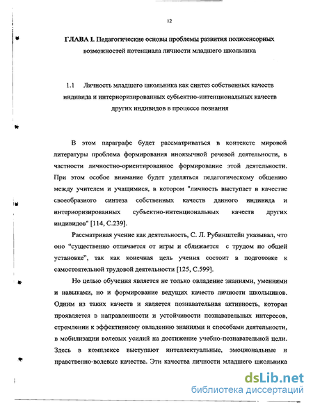 ГЛАВА I. Педагогические основы проблемы развития полисенсорных возможностей потенциала личности младшего школьника 12-77
