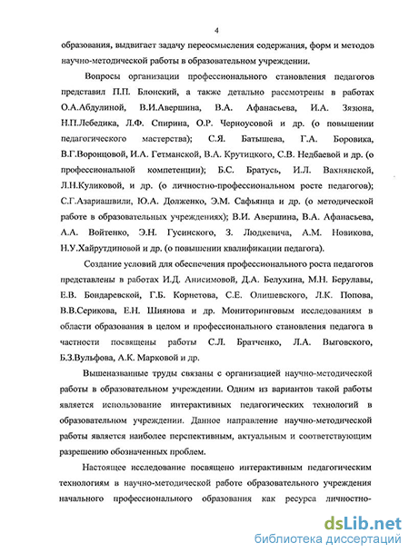 Актуальность обозначенных проблем, их общепедагогическое и практическое значение и необходимость решения определили выбор темы диссертационного исследования: «Применение интерактивных технологий в научно-методической работе как ресурс личностно-профессионального роста педагогов».
