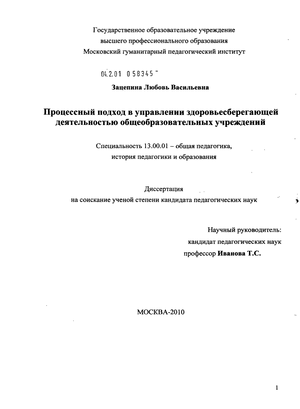 Вышеизложенные факты определили выбор темы диссертационного исследования «Процессный подход в управлении здоровьесберегающей деятельностью общеобразовательных учреждений».