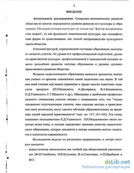 Вопросы педагогического образования являются предметом внимания ученых со времени становления самой педагогики как науки. В той или иной степени они нашли отражение в трудах многих известных педагогов прошлого (П.ПБлонского, А.Дистервега, Я.А.Коменского, К.Д.Ушинского, С.Т.Шацкого и др.). Обращение к проблемам профессионального становления учителя связано с пониманием того, что "только специально подготовленные учителя, зная хорошие методы и нравственные цели воспитания, могут сделать обучение образовательным, не вредящим нашей народной нравственности" (цит. по: 117, 161-162). Эти слова, сказанные последователем К.Д.Ушинского Л.Н.Модзалевским около полутора веков назад, и сегодня определяют значение качества педагогического образования, которое находится в центре внимания многих педагогов и психологов современности.