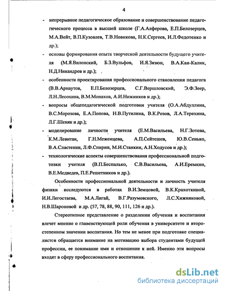 Особенности профессиональной деятельности и личность учителя физики . исследуются в работах В.И.Земцовой, В.К.Крахоткиной, И.И.Легостаева, М.А.Лигай, В.Г.Разумовского, Л.С.Хижняковой, Н.В.Шароновой и др. (57, 78, 88, 90, 111, 126 и др.).