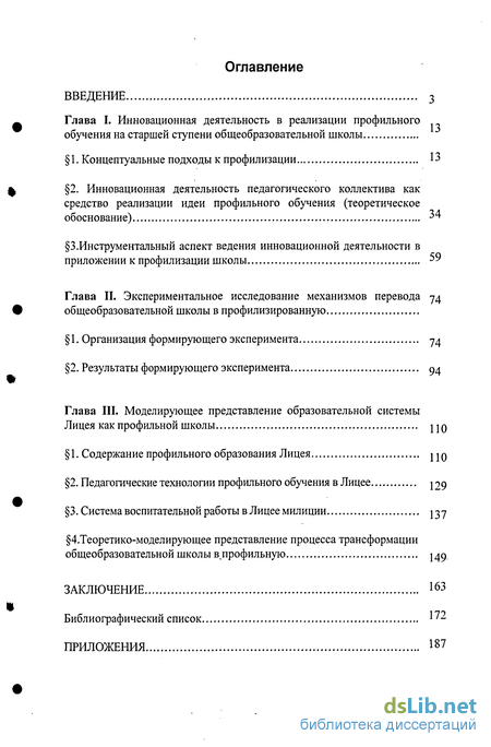 Цель диссертационного исследования - выявить особенности и возможности механизмов инновационной деятельности как средства целенаправленного воздействия на развивающуюся образовательную школу для осуществления ее перевода в профильную в соответствии с миссией профилизации - обеспечением реальной дифференциации, личностного и профессионального самоопределения обучаемого в образовательном процессе, обобщить на репрезентативно-моделирующем уровне модель профилизации образовательного процесса специфического ("милицейского") профиля.