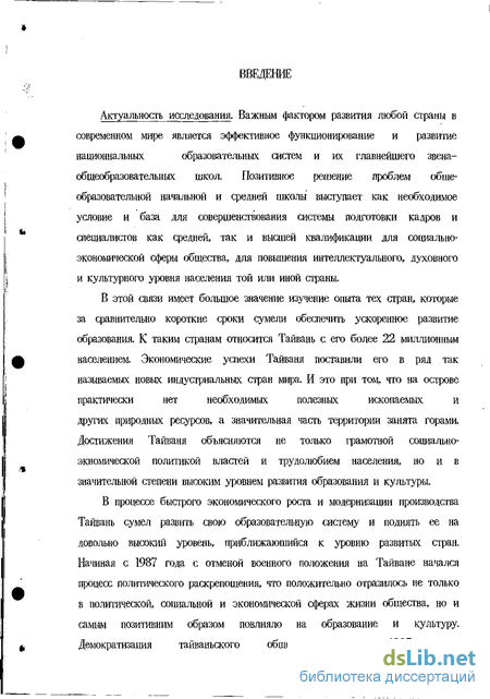 Проблема исследования - особенности развития школьного образова- ния в новых индустриальных странах Восточной и Юго-Восточной Азии на примере Тайваня.