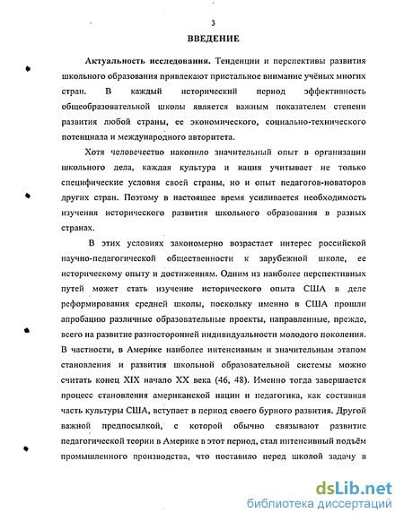 В этих условиях закономерно возрастает интерес российской научно-педагогической общественности к зарубежной школе, ее историческому опыту и достижениям. Одним из наиболее перспективных путей может стать изучение исторического опыта США в деле реформирования средней школы, поскольку именно в США прошли апробацию различные образовательные проекты, направленные, прежде, всего на развитие разносторонней индивидуальности молодого поколения. В частности, в Америке наиболее интенсивным и значительным этапом становления и развития школьной образовательной системы можно считать конец XIX начало XX века (46, 48). Именно тогда завершается процесс становления американской нации и педагогика, как составная часть культуры США, вступает в период своего бурного развития. Другой важной предпосылкой, с которой обычно связывают развитие педагогической теории в Америке в этот период, стал интенсивный подъём промышленного производства, что поставило перед школой задачу в