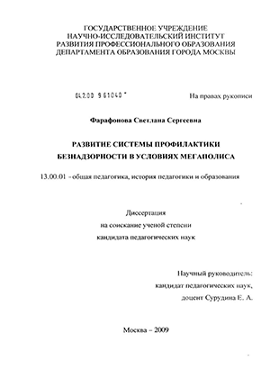 Разрешение выдвинутого противоречия определило проблематику нашего исследования. Педагогическая значимость проблемы, ее недостаточная разработанность в сочетании с острой необходимостью определения новых подходов к ее решению обусловили выбор темы нашего диссертационного исследования - «Развитие системы профилактики безнадзорности в условиях мегаполиса».