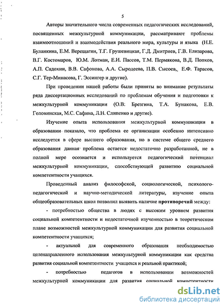 Значительное число современных педагогических исследований, посвященных межкультурной коммуникации, рассматривают проблемы взаимоотношений и взаимодействия реального мира, культуры и языка (Н.Е. Буланкина, Е.М. Верещагин, Т.Г. Грушевицкая, Г.Д. Дмитриев, Г.В. Елизарова, В.Г. Костомаров, Ю.М. Лотман, Е.И. Пассов, Т.М. Пермякова, В.Д. Попков, А.П. Садохин, В.В. Сафонова, А.А. Сыродеева, П.В. Сысоев, Е.Ф. Тарасов, С.Г. Тер-Минасова, Г. Эссингер и другие).