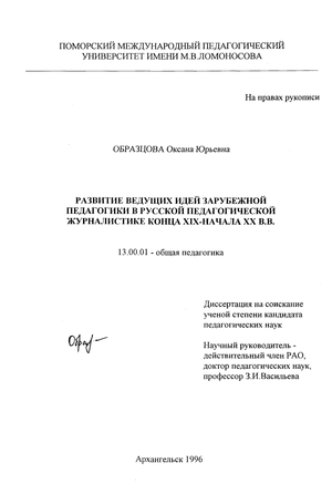 Таким образом, объектом исследования является русская педагогическая журналистика конца XIX - начала XX в.в., предметом - идеи зарубежной педагогики конца XIX - начала XX в.в. в русской педагогической журналистике и их развитие.