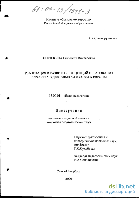 Развитие концепции непрерывного образования взрослых, ее поддержка и реализация в деятельности Совета Европы