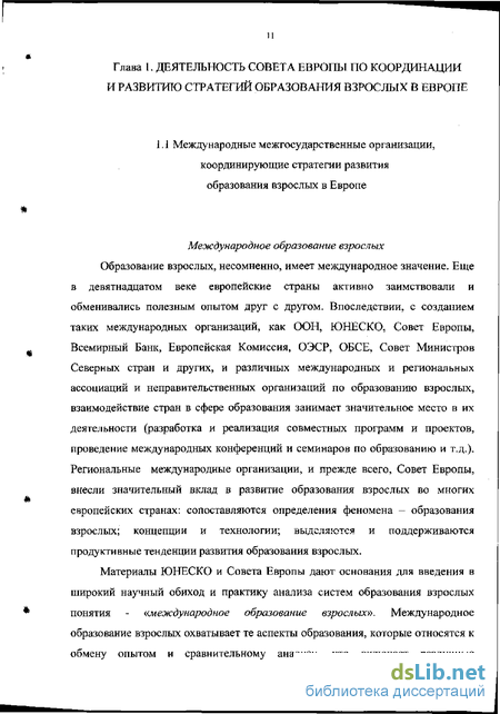 Глава 1. Деятельность Совета Европы по координации и развитию стратегий образования взрослых в Европе 11