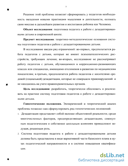 Предмет исследования: теоретико-методологические основания системы подготовки педагогов к работе с дезадаптированными детьми.