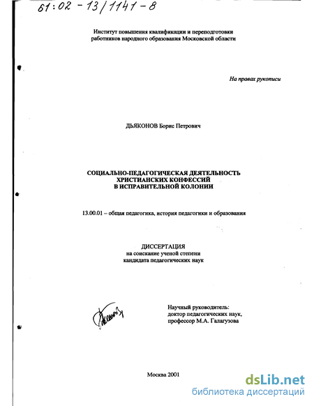 В изученных работах недостаточно освещена деятельность христианских конфессий как субъекта социально-педагогической деятельности и их роль в организации воспитания осужденных в