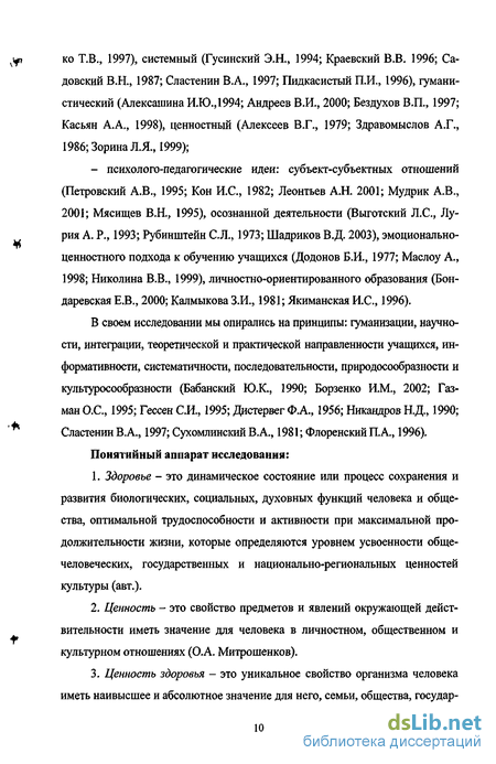 Однако не у всех старшеклассников вырабатывается система ясных и устойчивых убеждений. Некоторые из них не могут самостоятельно определиться в выборе своей позиции, из-за чего происходит смещение ценностей, затрудняется анализ и адекватная реализация человеческих отношений, включая отношения к жизни и здоровью (Кон И.С., Лейтес Н.С., Мудрик А.В.). Поэтому вектор педагогических исследований должен быть направлен на поиск эффективных путей и способов поддержания здоровья с использованием учебного содержания, позволяющего реализовать при использовании его аксиологического потенциала не только познавательный, но и эмоционально-чувственньга, а также поведенческо-деятельностный аспекты.