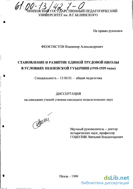 5. Становление и развитие единой трудовой школы в Пензенской губернии (1918-1929 годы) основывалось на личностно-профессиональной ментальносте педагогов, включавшей в себя многовековое культурное наследие России и нормативные классовые установки государства в изучаемое историческое время.