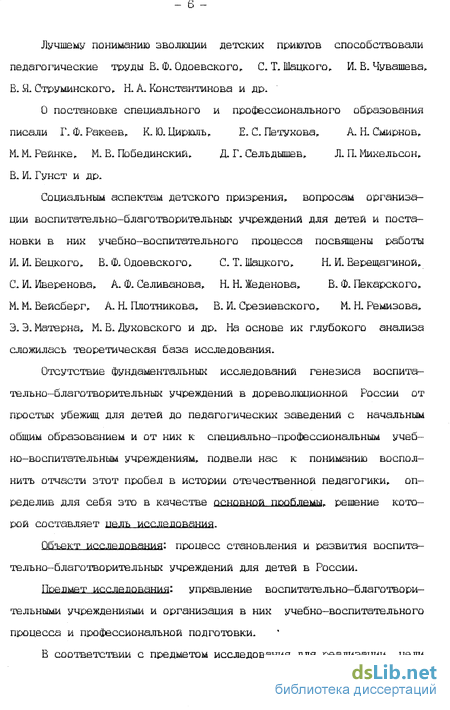 Исследование исторических закономерностей становления воспитательно-благотворительных учреждений для детей в России возникновение и развитие детских приютов - центров воспитания и образования детей беднейших родителей и детей-сирот - приобретает для современности особую актуальность еще и в связи с обращением все го нашего оощества к истокам духовности и милосердия, возрождением благотворительных обществ организацией новых типов детских домов, сельскохозяйственных интернатов и детских деревень, ставя щих перед соьой цель воспитать полноценных членов оьщества готовых к самостоятельной жизни, способных обходиться в ней полученной в этих учреждениях практической и технической подготовкой, имеющих возможность на базе полученного образования продолжить свое обучение и стать высококвалифицированными специалистами,
