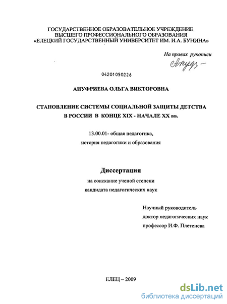 представлены педагогические идеи, которые составили основу для создания системы социальной защиты детства в России в изучаемый период;