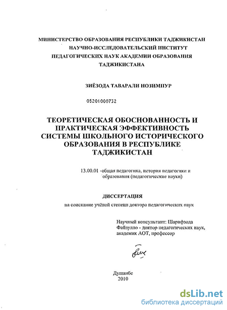В Таджикистане по школьному историческому образованию до сих пор исследования не производились. Нет и диссертаций по этой проблеме. Поэтому диссертационное исследование «Теоретическая обоснованность и практическая эффективность системы школьного исторического образования в Республике Таджикистан» является первым.