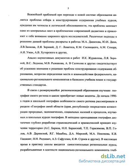Анализ нормативных документов и работ И.К. Журавлева, Л.Я. Зориной, B.C. Леднева, М.В. Рыжакова, А. В Салихова и других свидетельствует об усилении внимания к решению проблем конструирования содержания образования, вопросам определения места и взаимодействия федерального, национально-регионального компонентов в базисном учебном плане и государственных стандартах.