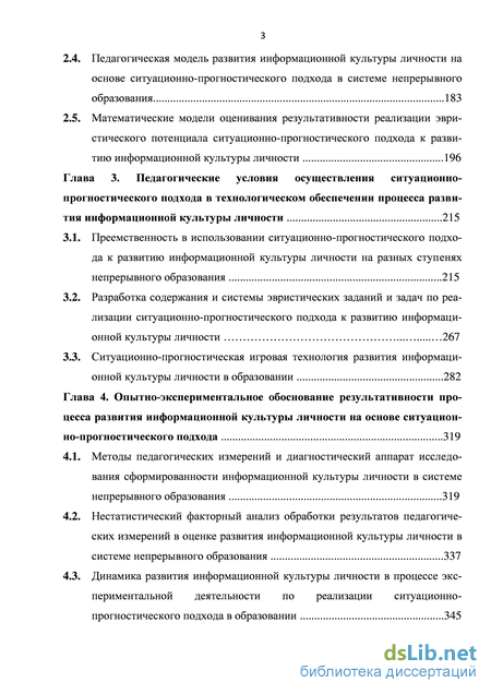 Глава 3. Педагогические условия осуществления ситуационно прогностического подхода в технологическом обеспечении процесса разви тия информационной культуры личности 215