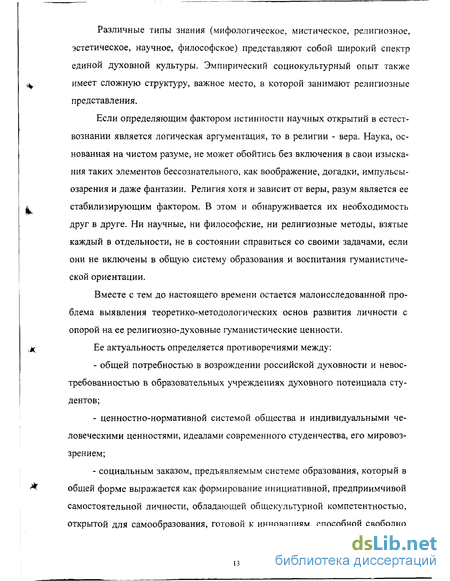 ловеческого рода, то есть на качественно новый виток духовности, и приобщить его к той надындивидуальной сфере, которая делает человека самоорганизующейся, инициативной, самосовершенствующейся личностью, способной не только иждивенчески потреблять продукты, добытые предшествующим поколением его рода, но и вносить свой личностный вклад в общечеловеческую сокровищницу духовных ценностей. Реализация данной программы развития будет эффективной при условии: а) опоры в процессе обучения и воспитания студентов на сформированные у них религиозные представления и убеждения; б) использования технологии развития личности, предполагающей взаимодополняемость современных принципов гуманистического развития личности и традиционных христианских заповедей, ставших общечеловеческими духовными ценностями в сознании студентов. Методологической основой исследования явились: