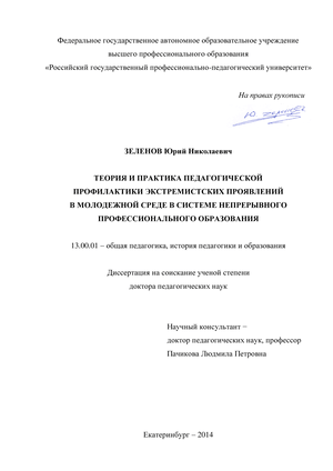 Глава 5. Педагогическая профилактика экстремистских проявлений в молодежной среде в системе непрерывного профобразования 197