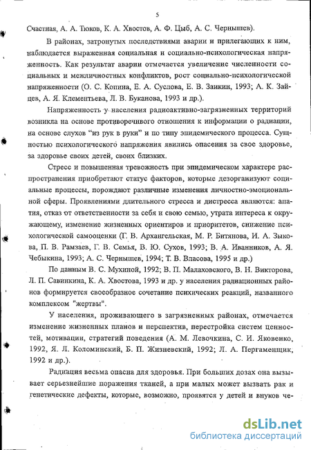 Исследования многих специалистов показали, что Чернобыльская катастрофа, кроме прямого физического воздействия на организм человека, оказывает огромное влияние на жизнедеятельность миллионов людей (В. Н. Абрамова, Г. В. Архангельская, С. А. Беличева, М. И. Бобнева, В. А. Бу-зунов, В. Н. Власов, Т!"В. Власова, В. В. Волков, А. К. Гуськова, И. В. Дубровина, Б. П. Жизневский, В. А. Иванников, В. К, Иванов, Е. В. Иванов, В. Б. Карпов, Е. Б. Кисельгоф, Л. М. Кудояр, А. Н. Либерман, И. А. Лихтарев, В. П. Михалев^ И. Р. Мошкевич, В. С. Мухина, Г. В. Семья, Т. Н.