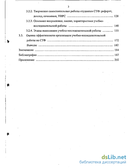 7 данной проблеме; 2) дать общую характеристику особенностей творческой деятельности студентов СТФ, ее компонентов; 3) выявить организационно-педагогические условия, способствующие развитию творческой деятельности студентов данного факультета; 4) провести сравнительный анализ составляющих творческой самостоятельной работы студентов на разных этапах обучения, выявить динамику их развития; 5) выработать рекомендации по совершенствованию самостоятельной творческой работы на факультете, в частности, — разработать систему организации учеб но-исследовательской работы как одной из форм самостоятельной творческой работы на ранней стадии обучения в вузе (на СТФ).
