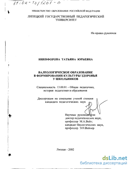 В последние годы специалисты обращают все более активное внимание на то, чтобы в общеобразовательной системе воспитание общей культуры человека включало бы в качестве неотъемлемого компонента формирование у него культуры здоровья. В решении этой проблемы исключительное значение придается валеологи чес кому образованию, которое рассматривается как эффективный рычаг не только формирования культуры здоровья, но и срочного в пределах относительно короткого периода времени принципиального перелома в тенденциях и динамике здоровья детей [42; 43; 73; 110; 166; 215; и др.].