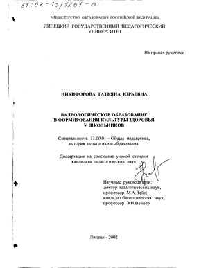 Апробация полученных результатов. Теоретические и экспериментальные результаты исследования докладывались и обсуждались на научно - практических конференциях «Здоровье ребенка и пути его формирования и защиты» (Липецк, 1997, 2000); заседаниях Межвузовского центра по проблемам валеологического образования Министерства образования Российской Федерации при ЛГПУ (1996 - 2001гг.); ежегодных конференциях по итогам НИР преподавателей ЛГПУ (1997 - 2001); областной научной конференции «Молодежь и наука на рубеже XXI века» (Липецк, 1997); двенадцатой межвузовской научной конференции преподавателей, аспирантов и студентов «Вопросы естествознания» (ЛГТШ, 1998); второй Всероссийской научно - практической конференции «Актуальные проблемы валеологии в образовании» (Липецк, 1999); международных научно-практических конференциях "Ребенок и Север: Проблемы и перспективы формирования здоровья детей и молодежи в экстремальных условиях среды обитания" (Мурманск, 1999,2001); Международном конгрессе валеологов «Здоровье и образование» и Третьей Всероссийской научно-практической конференции «Педагогические проблемы валеологии» (Санкт-Петербург, 1999); на областной научно-практической конференции «Физкультурное и валеологическое образование на рубеже XXI века (Тула, 2000).