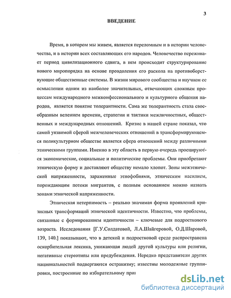 Время, в котором мы живем, является переломным и в истории человечества, и в истории всех составляющих его народов. Человечество переживает период цивилизационного сдвига, в нем происходит структурирование нового миропорядка на основе преодоления его раскола на противоборствующие общественные системы. В жизни мирового сообщества и научном ее осмыслении одним из наиболее значительных, отвечающих сложным процессам международного межконфессионального и культурного общения народов, является понятие толерантности. Сама же толерантность стала своеобразным велением времени, стратегии и тактики межличностных, общественных и международных отношений. Кризис в нашей стране показал, что самой уязвимой сферой межчеловеческих отношений в трансформирующемся поликультурном обществе является сфера отношений между различными этническими группами. Именно в эту область в первую очередь проецируются экономические, социальные и политические проблемы. Они приобретают этническую форму и доставляют обществу немало хлопот. Зоны межэтнической напряженности, зараженные этнофобиями, этническим насилием, порождающим потоки мигрантов, с полным основанием можно назвать зонами этнической напряженности.