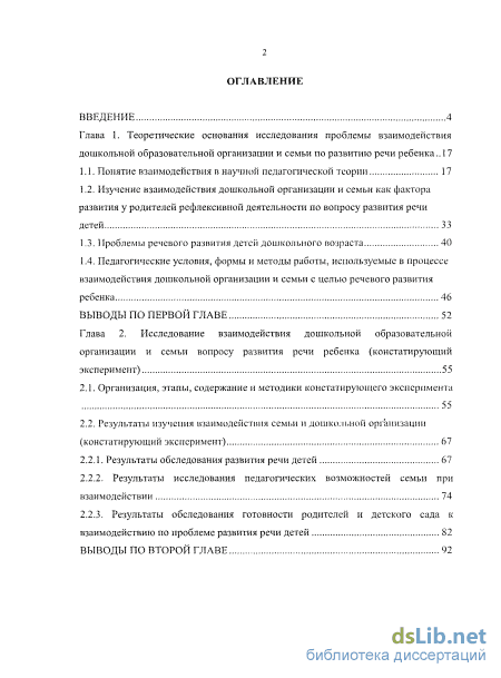 Глава 2. Исследование взаимодействия дошкольной образовательной организации и семьи вопросу развития речи ребенка (констатирующий эксперимент) 55