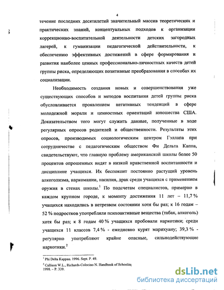 ГЛАВА I Психолого-педагогические основы организации воспитательной деятельности детей группы риска в загородных лагерях США 15