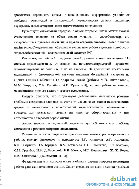 Различные аспекты сохранения здоровья школьников рассматривались в работах многих философов и психологов: Б.Г. Ананьева, А.Г. Асмолова, Б.Ф. Базарного, Н.А. Бердяева, ВМ Бехтерева, П.П. Блонского, Л.И. Божович, И.В. Дубровиной, СМ. Громбах, Е.П. Ильина, В.Е. Кагана, И.Г. Песталоцци, Ж.-Ж. Руссо, Н.Ю. Синягиной, Д.Б. Эльконина и др.
