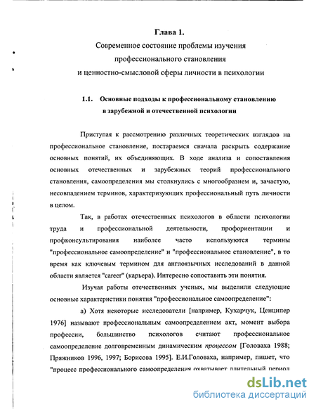 Глава 1. СОВРЕМЕННОЕ СОСТОЯНИЕ ПРОБЛЕМЫ ИЗУЧЕНИЯ ПРОФЕССИОНАЛЬНОГО СТАНОВЛЕНИЯ И ЦЕННОСТНО-СМЫСЛОВОЙ СФЕРЫ ЛИЧНОСТИ В ПСИХОЛОГИИ