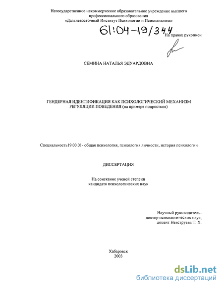 Изучение психологии идентификации в проблемном пространстве тендера определило обращение к работам, раскрывающим понятийный аппарат, историю, основные направления и методы изучения тендерных различий (А. Белый, С.Н. Булгаков, Н. Н. Бердяев, О. Вейнингер, О.А. Воронина, И.С. Голод, Ч. Лам-брозо, М. Мид, С. Моор, В.В. Розанов, А.В. Залкинд, И. С. Кон, И.С Клецина, В. С. Соловьев, М. Ходоров и др.).