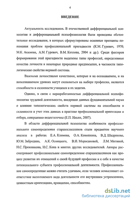 Актуальность исследования. В отечественной дифференциальной психологии и дифференциальной психофизиологии были проведены обстоятельные исследования, в которых сформулированы основные принципы понимания проблем профессиональной пригодности (К.М. Гуревич, 1970; М.К. Акимова, A.M. Гуревич, В.М. Козлова, 2004 и др.). Среди факторов формирования этой пригодности выделены типы профессий, определенные качества личности и некоторые природные предпосылки, в частности типологические свойства нервной системы.