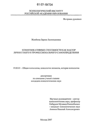 Цель исследования состоит в изучении роли эмоциональной и познавательной составляющей коммуникативных способностей в личностном самоопределении старшеклассников и профессиональном самоопределении студентов высшей школы.