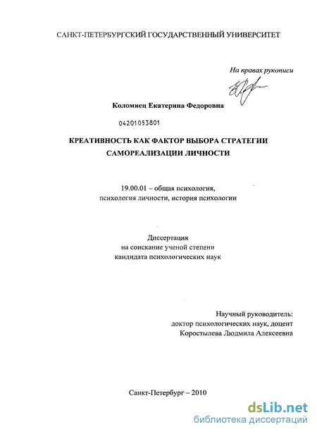 ГЛАВА 1. ТЕОРЕТИЧЕСКИЕ ОСНОВЫ ИССЛЕДОВАНИЯ КРЕАТИВНОСТИ В КОНТЕКСТЕ ВЫБОРА СТРАТЕГИИ САМОРЕАЛИЗАЦИИ ЛИЧНОСТИ 10