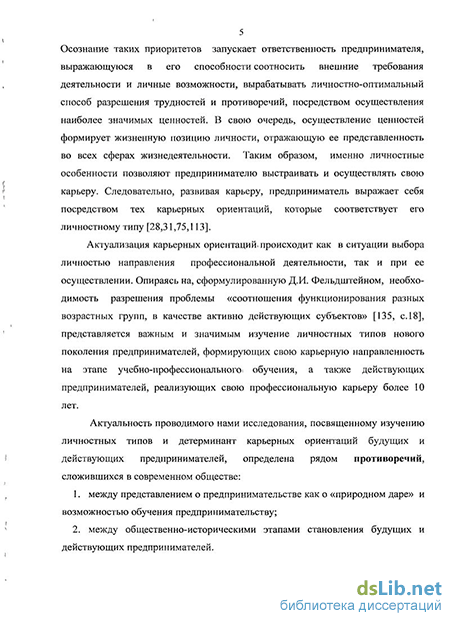 Актуальность проводимого нами исследования, посвященному изучению личностных типов и детерминант карьерных ориентаций будущих и действующих предпринимателей, определена рядом противоречий, сложившихся в современном обществе: