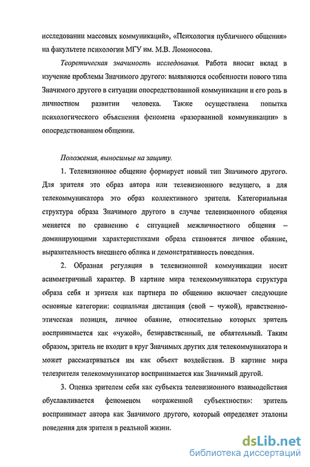 1.3.2. Образ Значимого другого в телевизионном общении 39