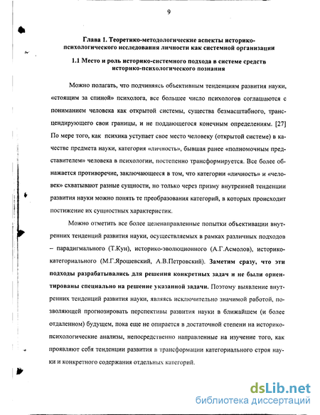 Глава 1. Теоретико-методологические аспекты историко-психологического исследования личности как системной организации 9