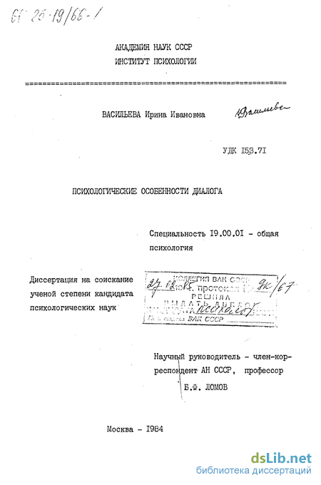 Первые замечания о диалоге содержатся в работах Е.Ф.Будде /37/, Л.В.Щербы /214/, Е.Д.Поливанова /149/.Они касаются различных особенностей диалога и диалогической речи, хотя и не носят характера систематических исследований. Значительным явлением стала работа Л.Якубинского "0 диалогической речи" (1923), содержащая немало ценных наблюдений по преимуществу психологического характера/220/. К сожалению, это чрезвычайно плодотворное исследование долгое время оставалось единственным в своем роде. В исследованиях диалога наступил длительный перерыв. Новая волна в изучении диалога началась только в 50-е годы. Она связана преимущественно с лингвистическим аспектом диалога. Периодически интерес к диалогу возникал у представителей и других наук: литературоведов /18/, историков /16, 84/, философов /27/ и др. В самое последнее время диалог стал предметом систематического исследования психологов.