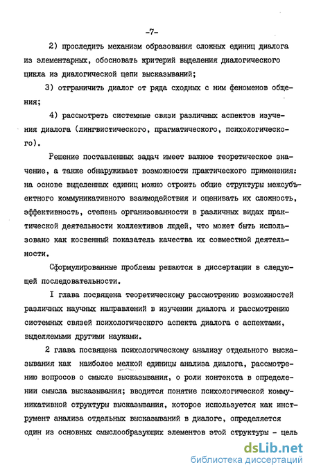 4) рассмотреть системные связи различных аспектов изучения диалога (лингвистического, прагматического, психологического).
