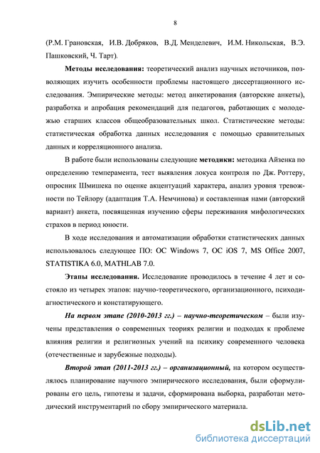 В соответствии с избранными направлениями исследования религиозно-мифологической и индивидуально-психологической сферы респондентов нами были выбраны соответствующие диагностические методики:
