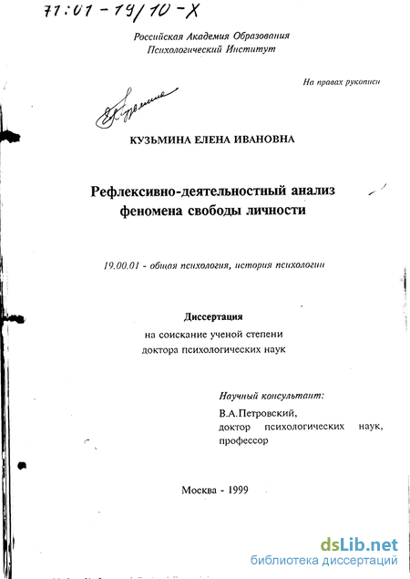 Разработанный нами рефлексивно-деятельностный подход позволил провести рефлексивно-деятельностный анализ феномена свободы личности.