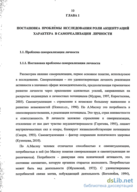 Глава 1. Постановка проблемы исследования роли акцентуаций характера в самореализации личности 10
