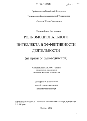 Теоретико-методологические основания исследования. Данное исследование строилось на научных положениях отечественных и зарубежных специалистов о проблеме человеческих способностей (Б.Г. Ананьев, Э.А. Голубе-ва, В.Н. Дружинин, В.А. Крутецкий, B.C. Мерлин, В.Н. Мясищев, Б.М. Теплов, С.Л. Рубинштейн, В.Д. Шадриков, Е.Б. Старовойтенко и др.); теории взаимосвязи когнитивных и эмоциональных процессов (Л.С. Выготский, А.Н. Леонтьев, С.Л. Рубинштейн и др.); исследований деятельности (К.А. Абульханова-Славская, А.А. Бодалев, А.В. Брушлинский, Б.Ф. Ломов, В.А. Петровский, В.Д. Шадриков и др.); психологии мышления (Л.С. Выготский, А.Н. Леонтьев, А.Р. Лурия, С.Л. Рубинштейн, И.Н. Семенов, СЮ. Степанов, Б.М. Теплов и др.), современных теоретических и эмпирических исследованиях эмоционального интеллекта (И.И. Ветрова; Д.В. Люсин; Е.А. Орел; Е.А. Сергиенко; R. Bar-On; R. Cooper; J.D. Mayer, D. Caruso, P. Salovey; G. Matthews; R. Roberts; A. Sawaf; M. Zeidner).