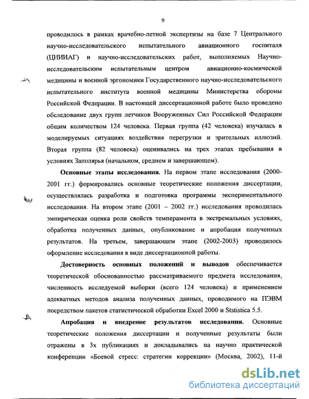 Основные этапы исследования. На первом этапе исследования (2000-2001 гг.) формировались основные теоретические положения диссертации, осуществлялась разработка и подготовка программы экспериментального исследования. На втором этапе (2001 - 2002 гг.) исследования проводилась эмпирическая оценка роли свойств темперамента в экстремальных условиях, обработка полученных данных, опубликование и апробация полученных результатов. На третьем, завершающем этапе (2002-2003) проводилось оформление исследования в виде диссертационной работы.