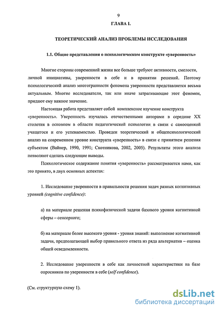1.1. Общие представления о психологическом конструкте «уверенность» 9