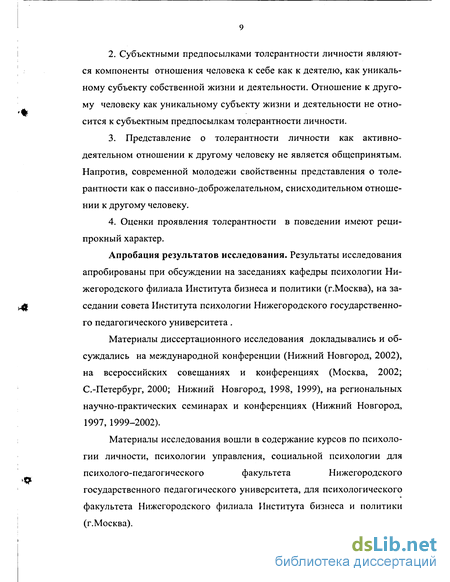 В своей работе мы также опирались на научные представления о толерантности личности (10, 14, 47, 58, 61, 53, 83) и развитии субъектное человека (1, 2, 9, 24, 30, 31, 86).